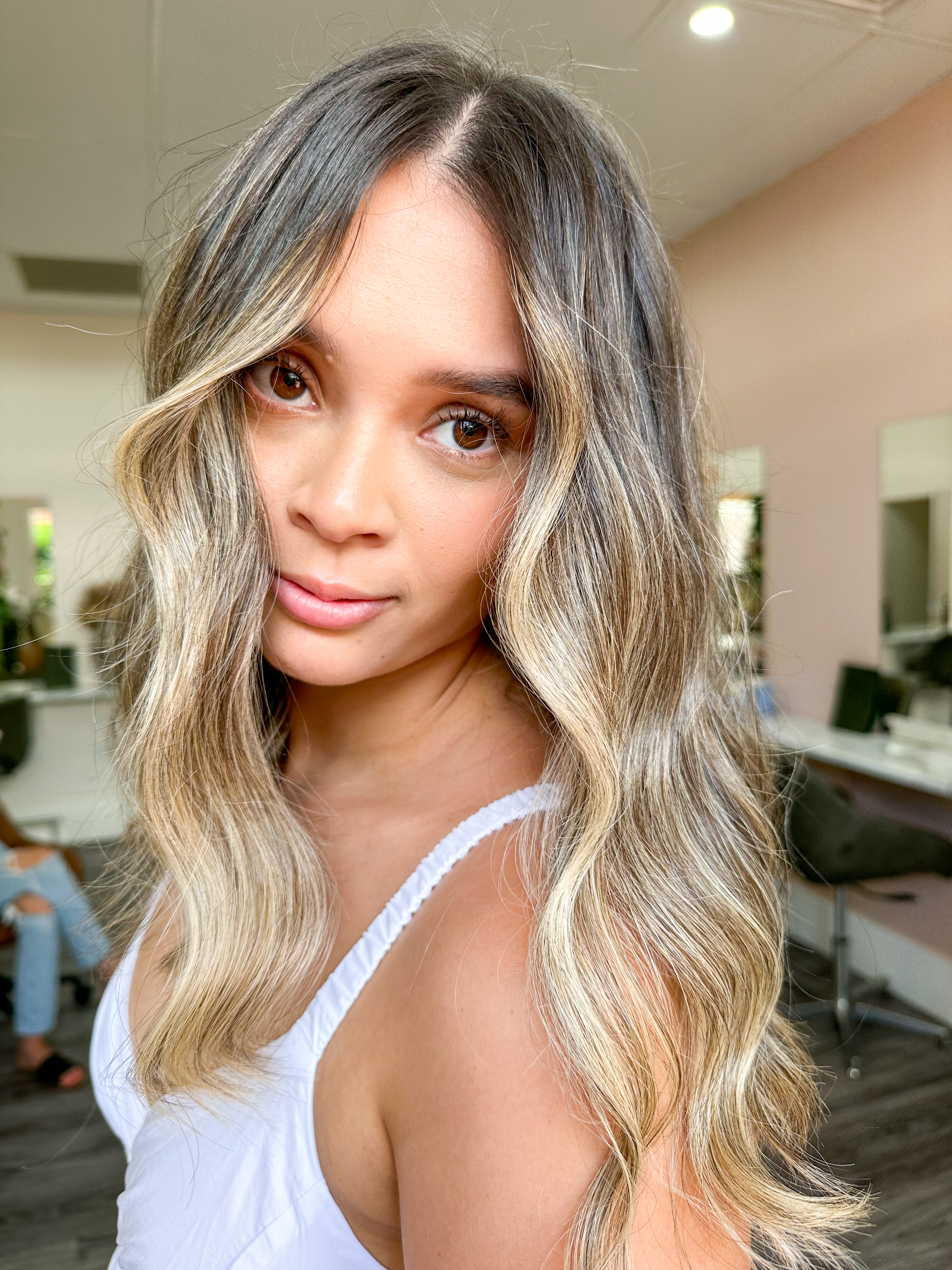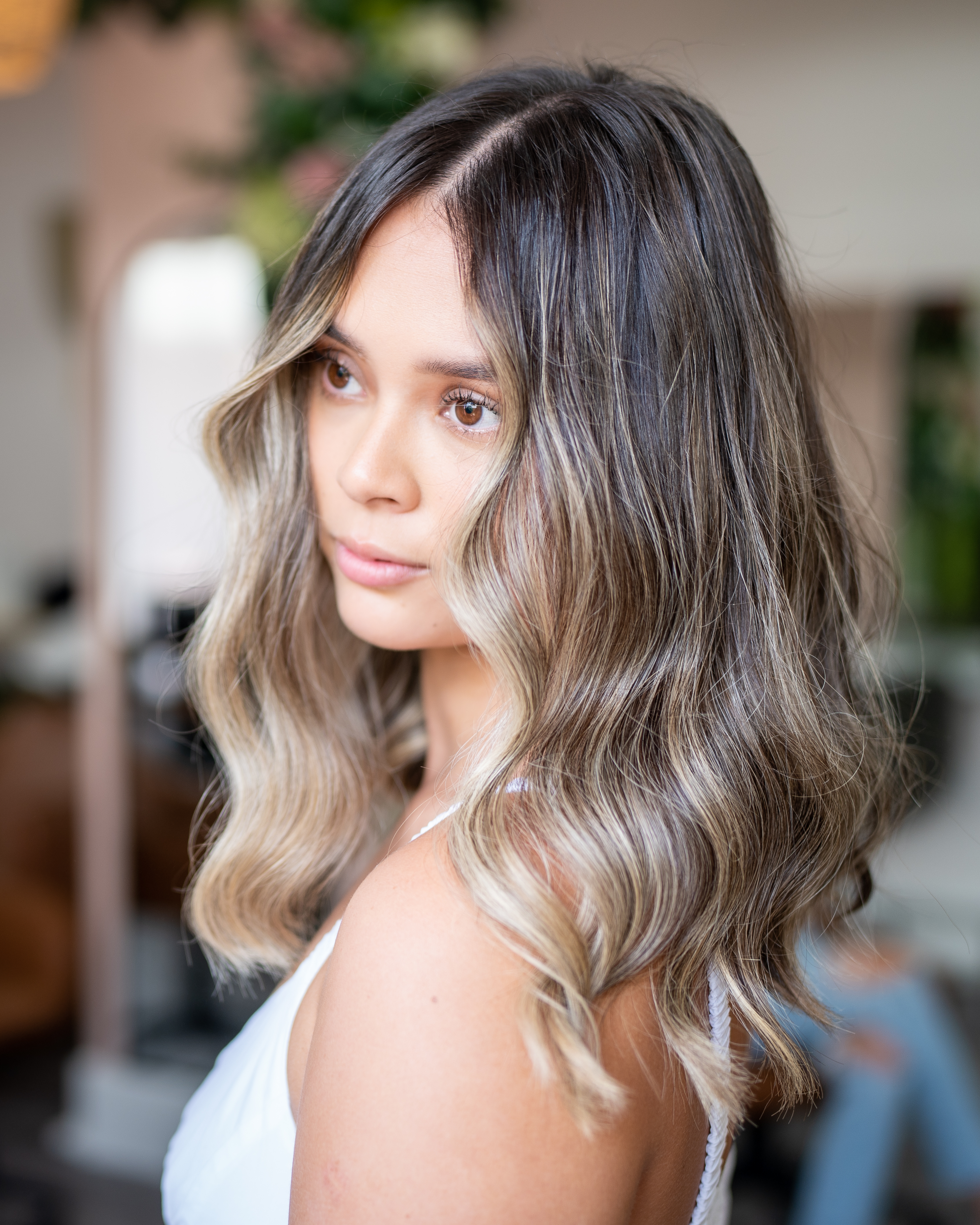 Balayage is a great example of a hair colour tailored to a clients lifestyle. This client wants a low maintenance colour that only needs to be refreshed from 3 to 6 months. In contract to this we have a client who has grey roots and does not wish to go all natural.